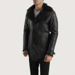 Furcliff Black Leather Coat